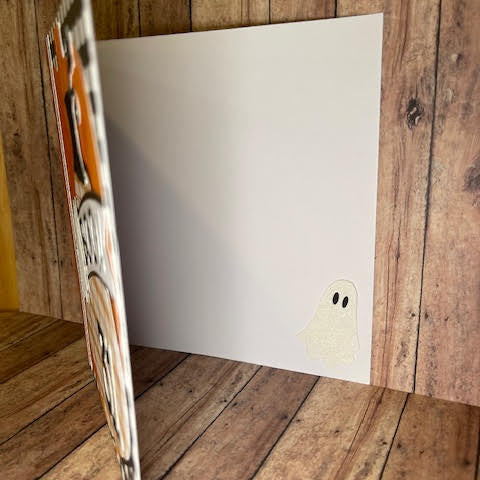 This high-quality handmade card has a small ghost on the inside for an added touch and is blank, allowing you to personalize your message for any occasion.