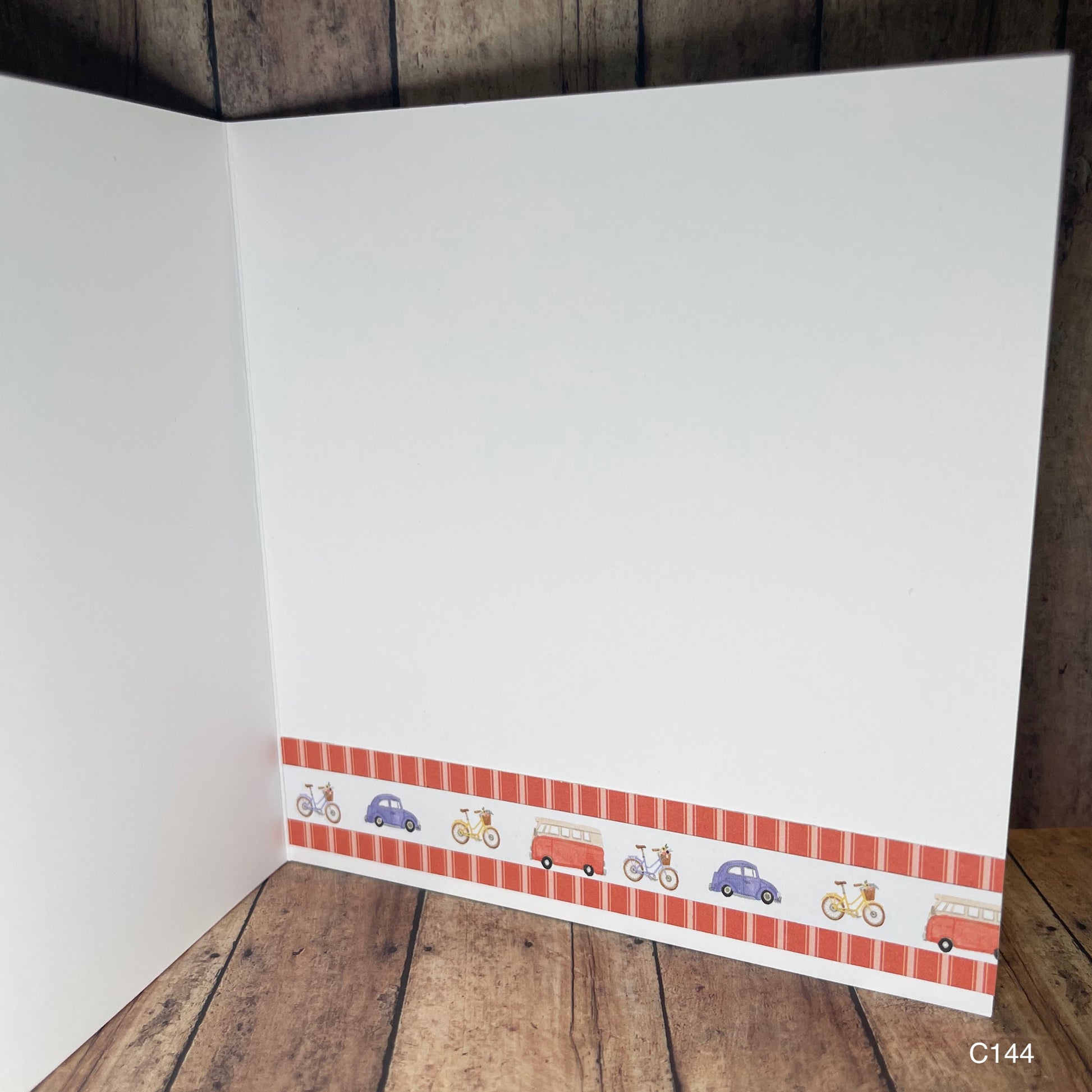 The road is calling and I must go! This fun transportation scene card invites exploration, peace in nature, fulfilling a dream. Perfect for any occasion - send to the explorer, adventurer, curious person in your life! It makes a great good luck, thinking of you, you can do it, happy birthday, or missing you card.