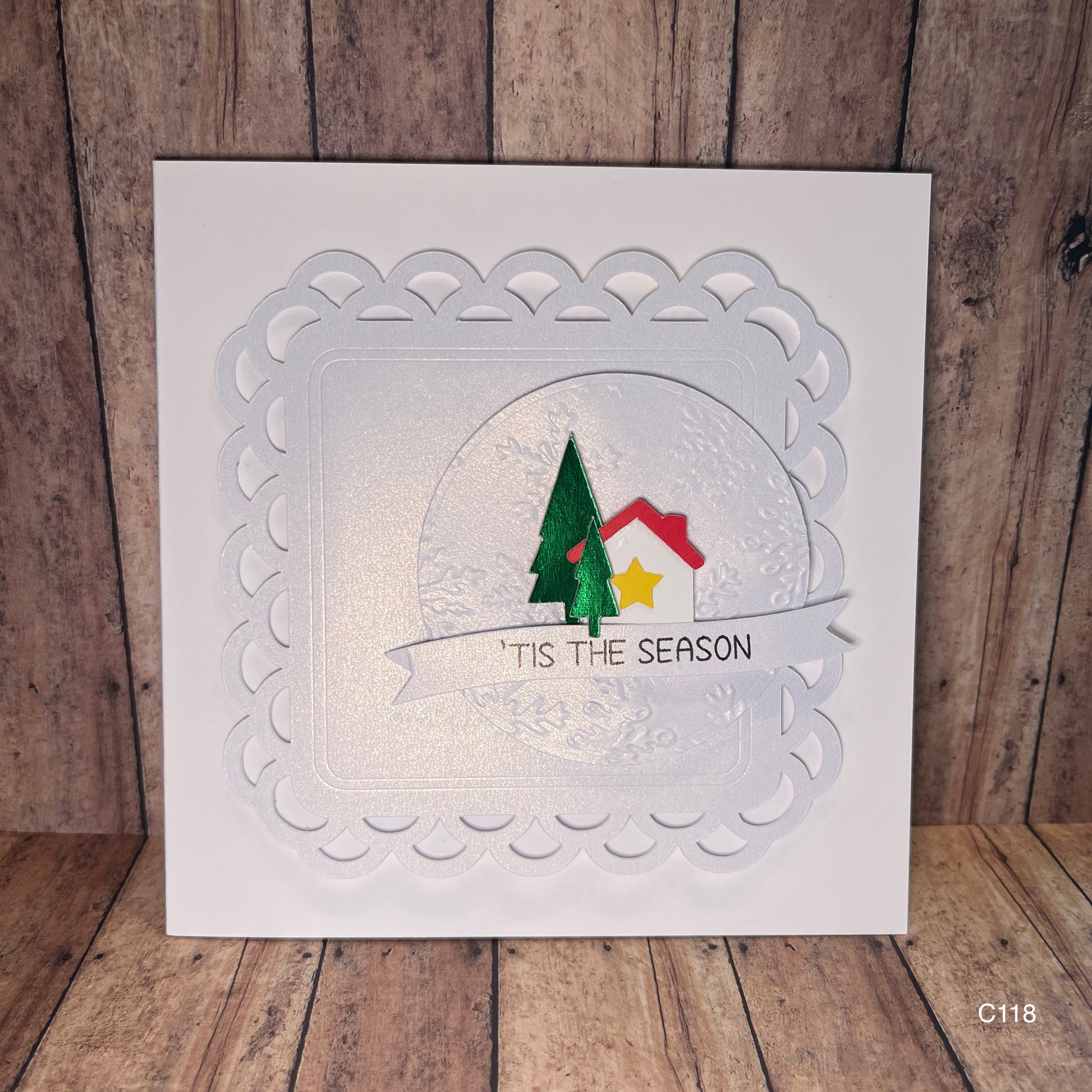 Modern simple embossed Christmas holiday card pack (Set of 4).