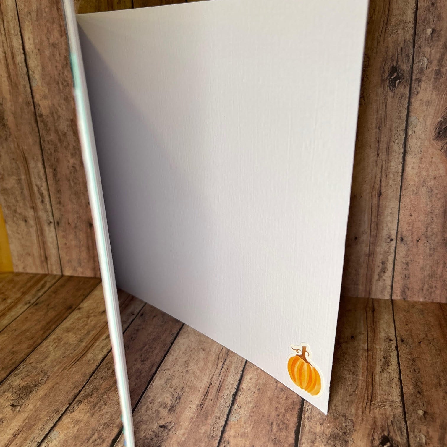 This high-quality handmade card has a small pumpkin on the inside for an added touch and is blank, allowing you to personalize your message for any occasion.
