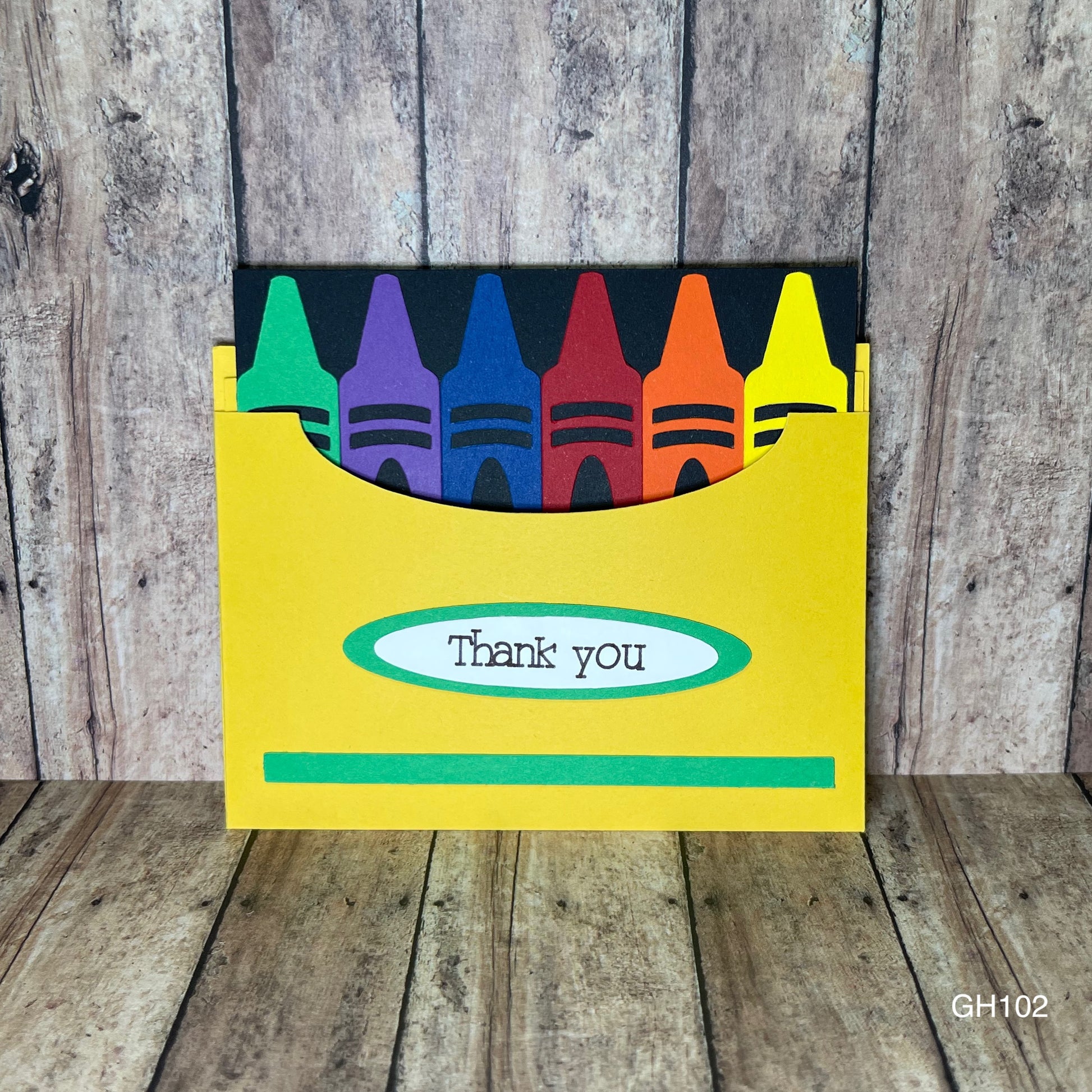 Show your appreciation in a sweet and thoughtful way with this "Thank you" box of crayons gift card holder! Whether it's for Teacher Appreciation Week, end of the school year, or just to say Thanks, this cheerful design is sure to brighten a teacher's day. Let them know just how much they mean to you. Because a little "thank you" goes a long way!
