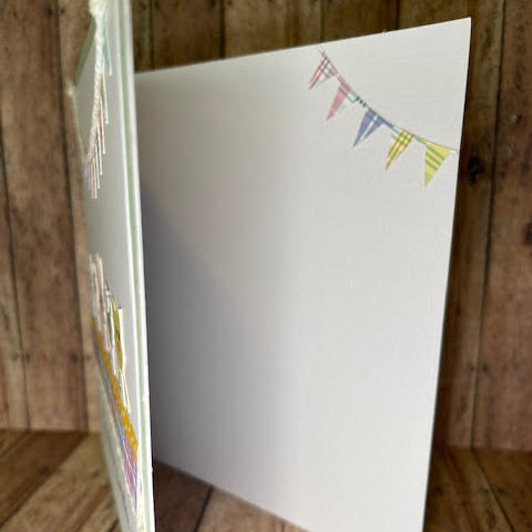 This high-quality handmade card has a small banner on the inside for an added touch and is blank, allowing you to personalize your message for any occasion.