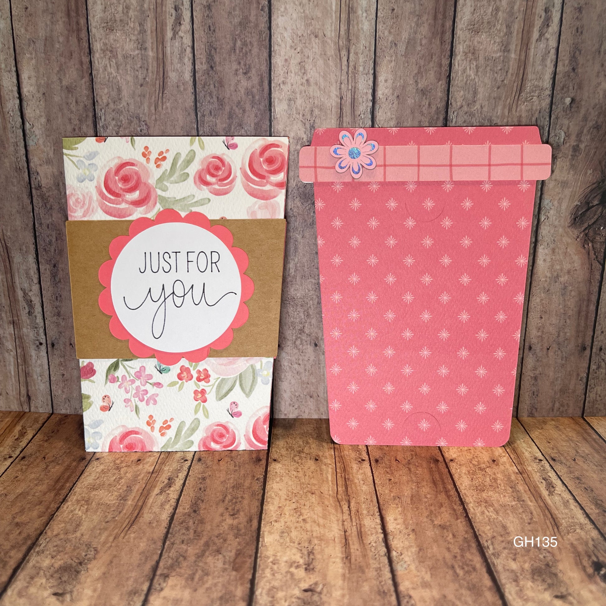 This coffee cup gift card holder is the perfect gift for any occasion. The card is shaped like a coffee cup and features a "Just for You" embellishment on the front. The inside pulls up from the top so you can add your gift card. On the back of the cup is a “To/From” label and comes with a white envelope. Packaged in a cellophane sleeve. Measures 3.75" x 5.5625". Made of premium cardstock.