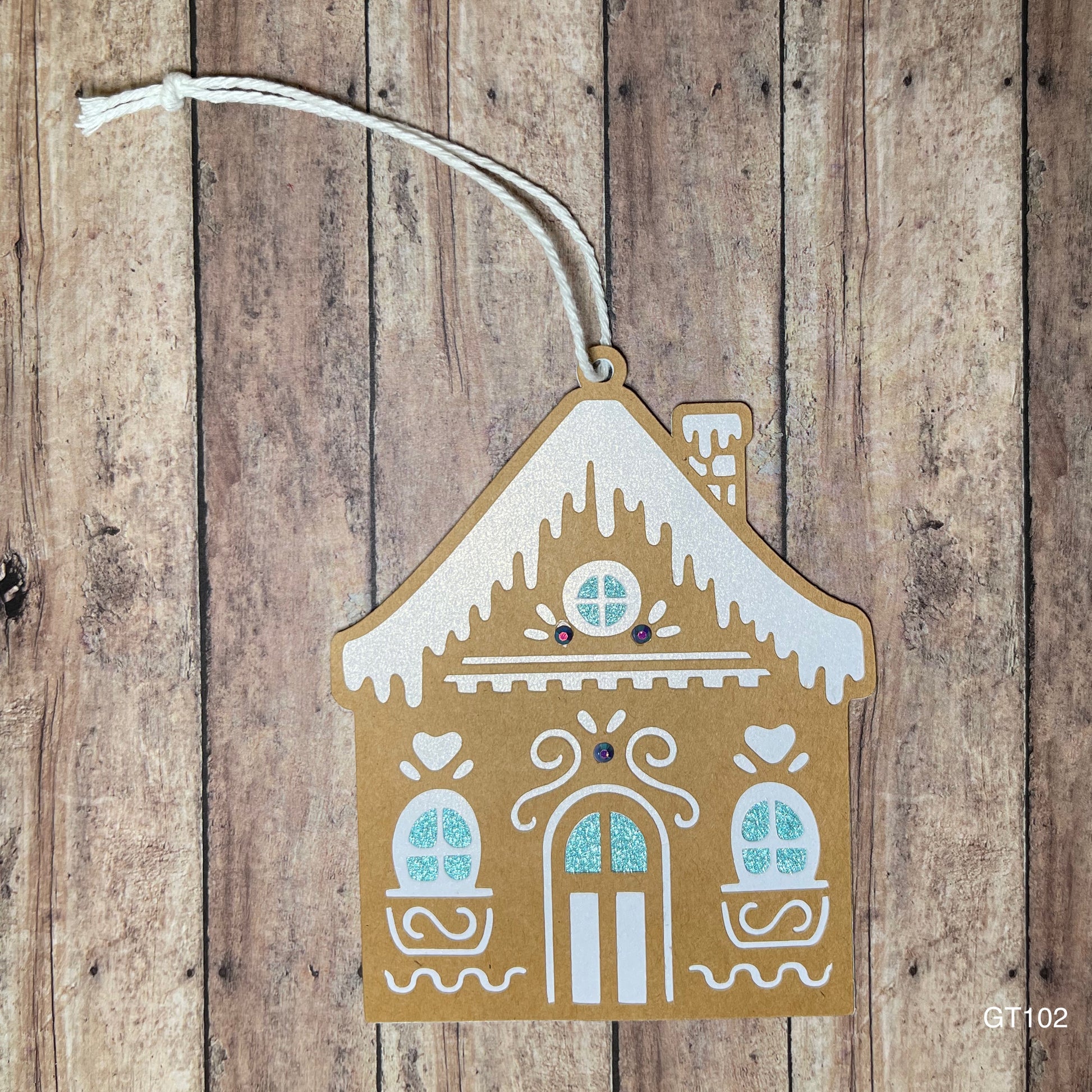 Beautiful Gingerbread house gift tags will make your gifts stand out and sparkle under the tree! Each tag is handcrafted and tied with white twine. The backside of the tag is white and has "To/From" printed on them. Each set contains 4 tags and are handmade with premium cardstock. They come sealed in a clear cellophane wrapper.
