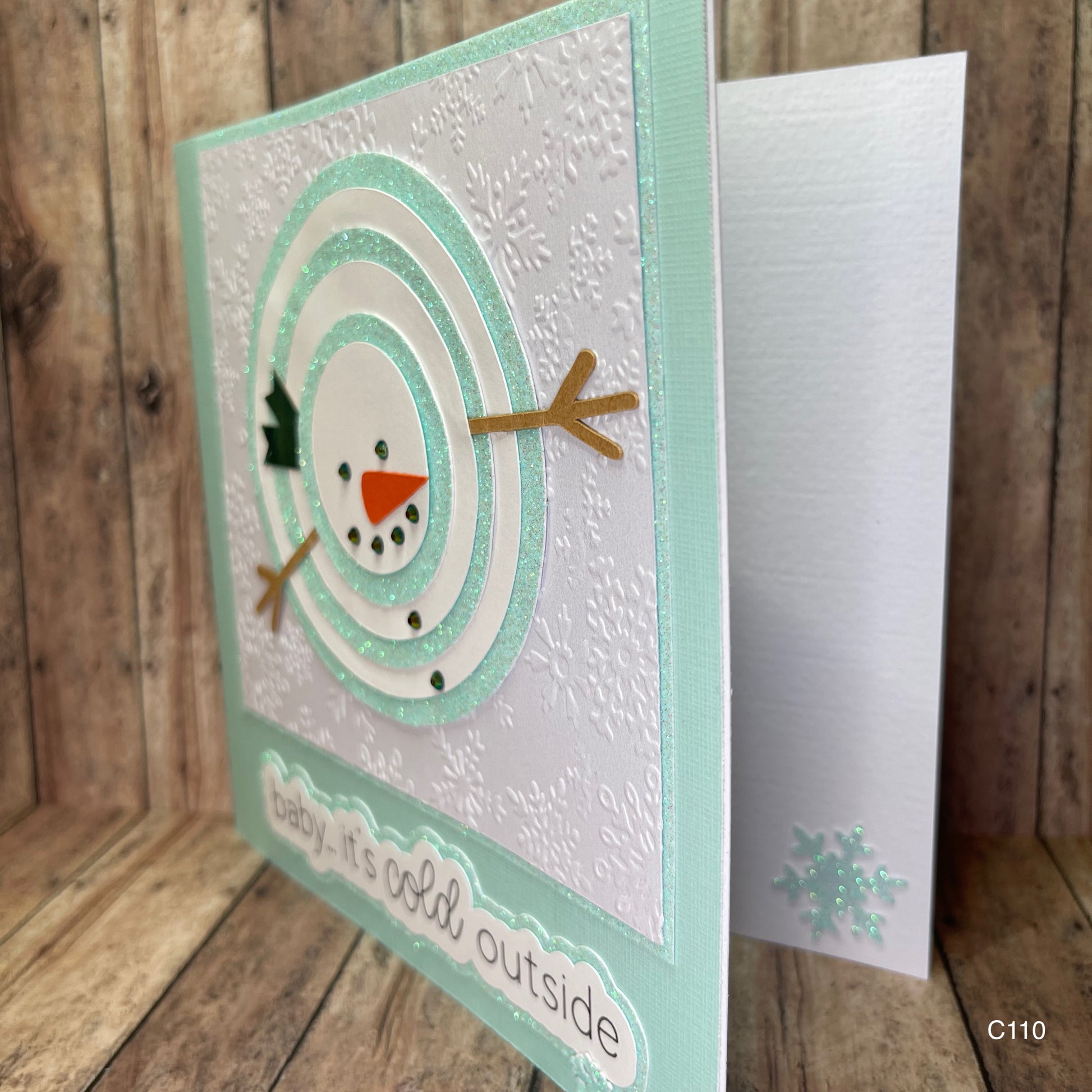 Adorable melting snowman winter card for the holidays. Perfect if you're based somewhere warm! Made of premium cardstock in a sea glass color. This high-quality card has a small snowflake on the inside for an added touch and is blank, allowing you to personalize your message for any occasion.